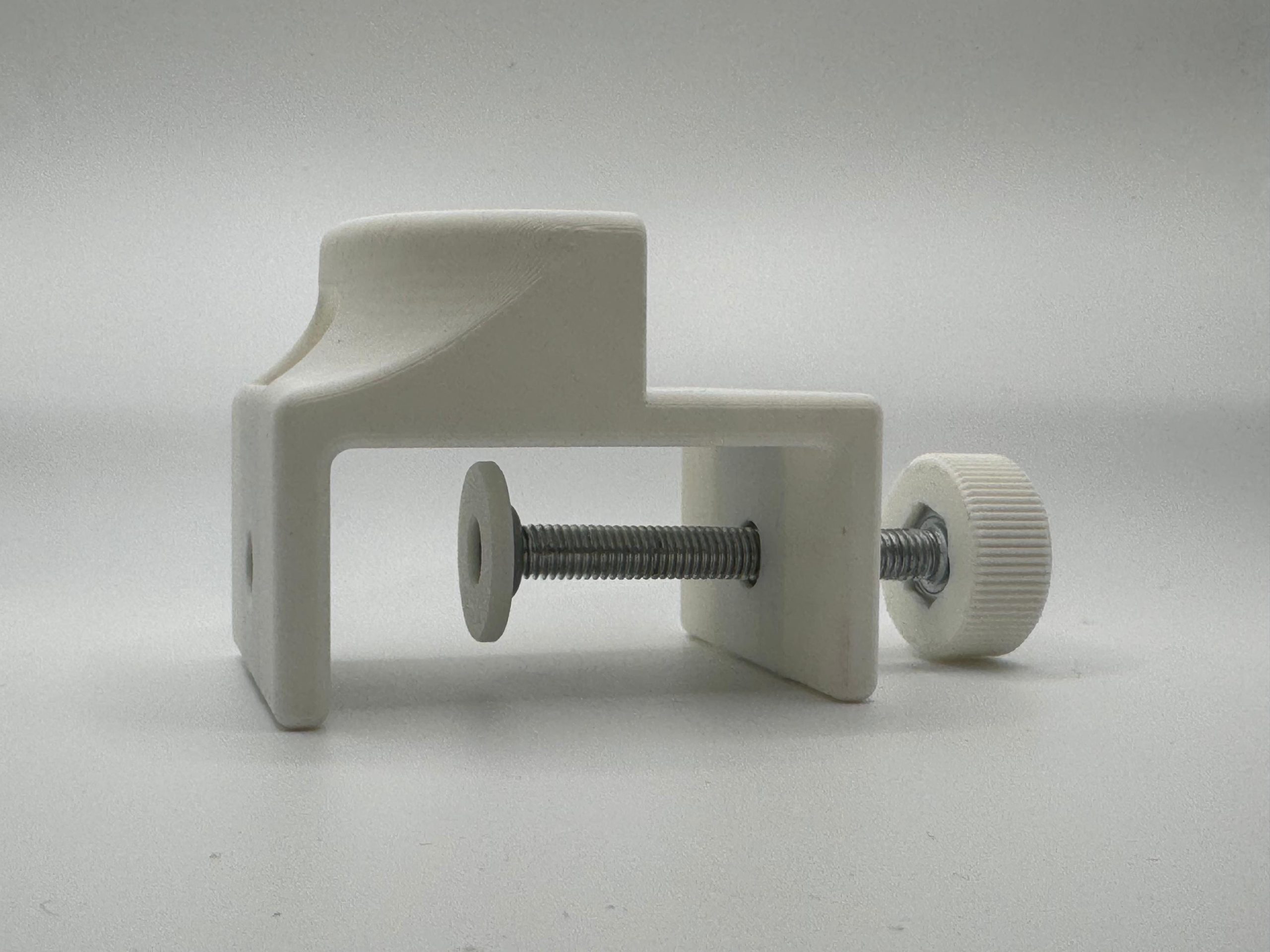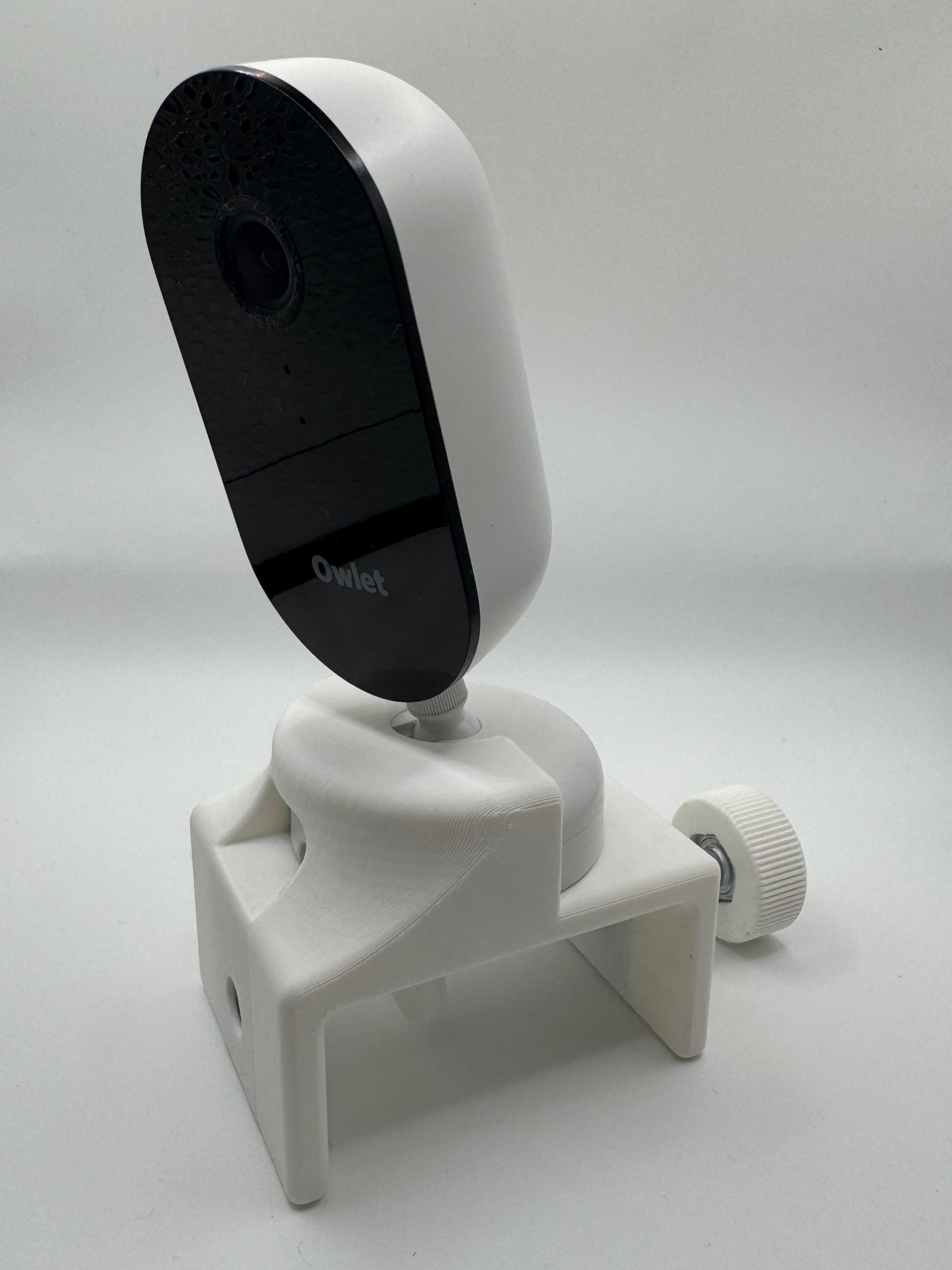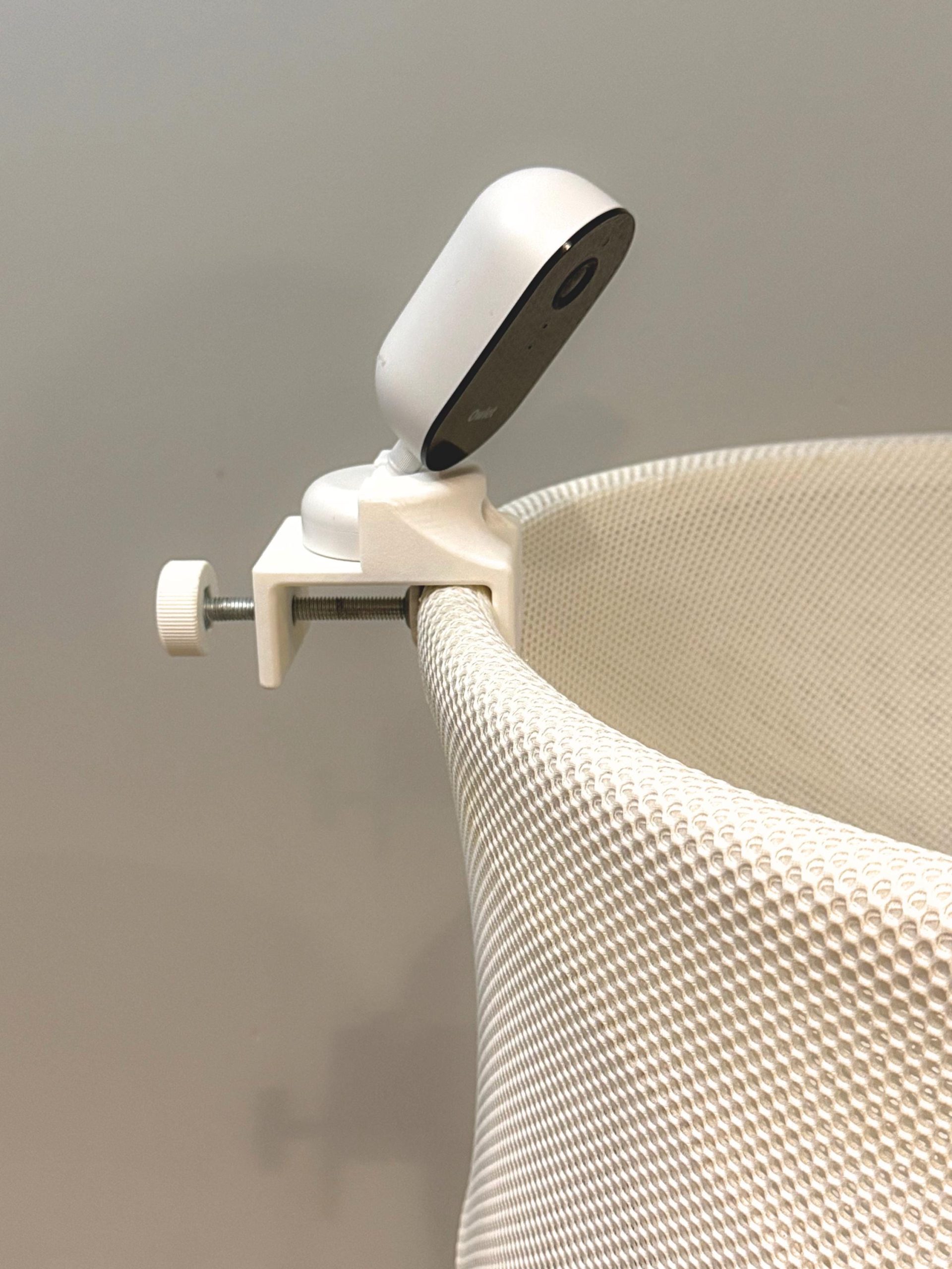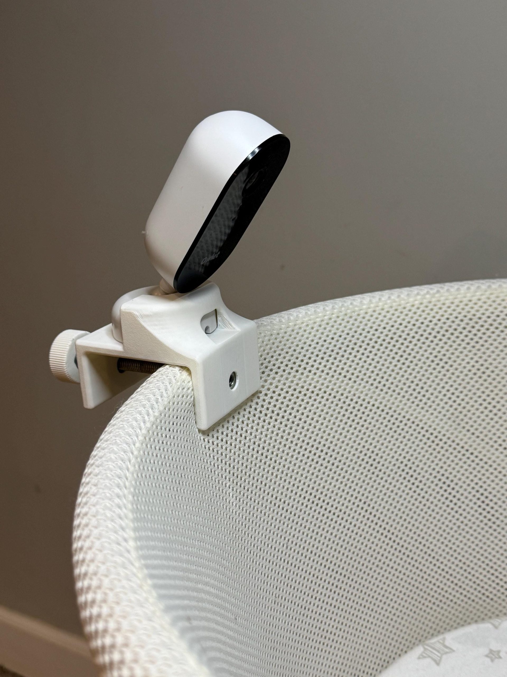 Clamp-style mount designed for secure camera placement on cribs, bassinets, playards, shelves, or other flat surfaces. Provides stable positioning with a reinforced internal structure and easy installation without drilling. Suitable for flexible setups at home or while traveling, ensuring reliable and adjustable camera support.